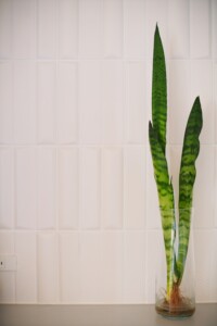 キッチンと洗面室の壁タイル。思わず手を触れてみたくなるような立体的な陰影が美しい。