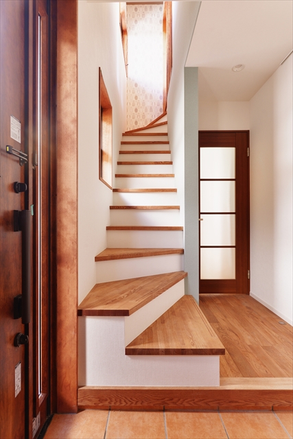 玄関から2階の親世帯に向かう階段のほかに、リビングから直接2階の子ども部屋に行けるリビング階段も設けました。