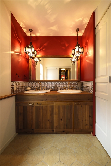 お気に入りのタイルに合わせて、壁の色やシンクを選びました。
