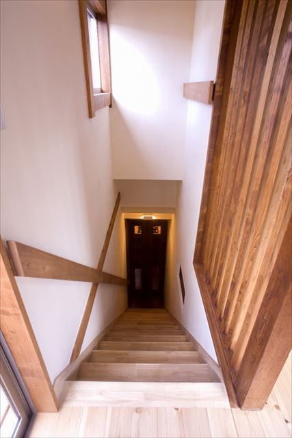 【階段に】光を玄関まで届け、落下防止の手すりとしても