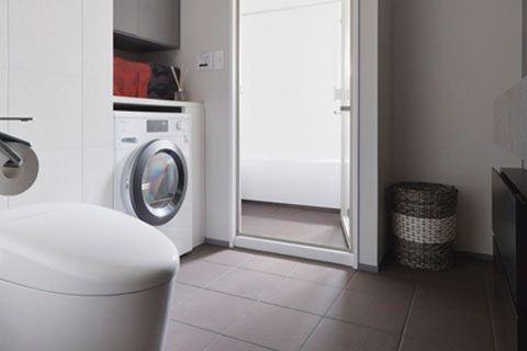 入り組んでいた玄関から廊下も水まわりを再配置して、広々と風の通る住まいに刷新しています。