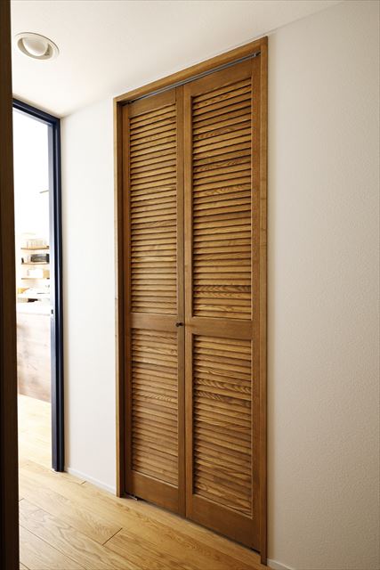 クロゼットは2面から使えるように内側を仕切って扉をつけ、より便利に。