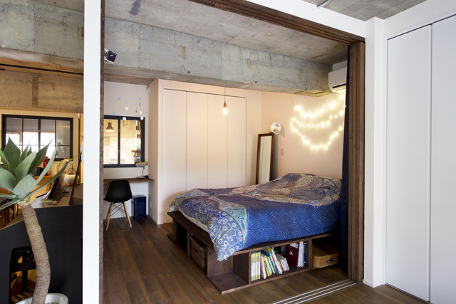 こちらも先ほどのお家と同じく、和室を取り込んで広げたLDKの一部を寝室にしたマンション。