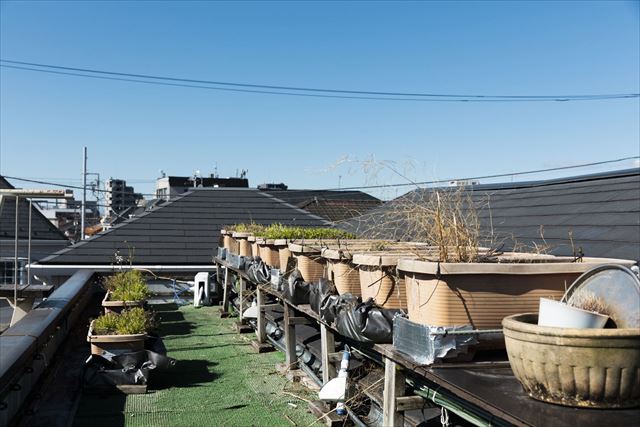 だんな様●僕は屋上ですね。夏はここで、夜景を見ながら夕涼みできます。家庭菜園も始めたんですよ。