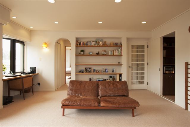 こちらのお家は、壁をカルクウォールというスイス漆喰で白に、床はベージュのカーペットを合わせました。