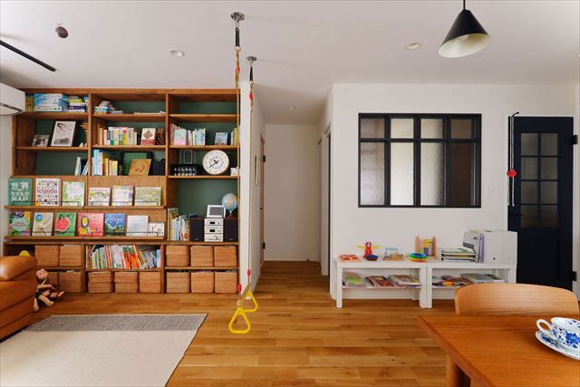 ブランコも作って、室内でも楽しく遊べるリビングになりました。