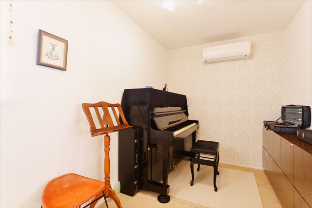 キッチンの奥には防音室もつくり、家族で音楽の演奏が楽しめるスペースに。