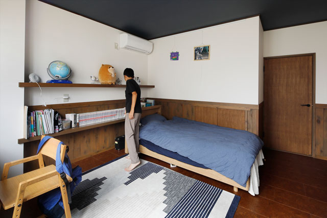 長男●自分専用のスペースができて嬉しいです。落ち着いた印象にしたくて、壁や床の色を自分で選びました。すごく満足しています。