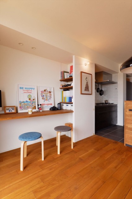 こちらは施工上の理由で無垢の床が貼れず、コルクタイルを用いたマンションリノベ。