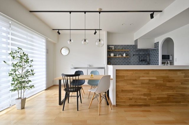 ブルーをベースに、家族の居心地のよさが計算されたリノベーションです。