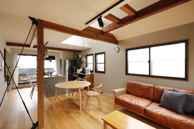 1階LDKの日当たりの悪さ、寒さなどが気になっていたため、2階の個室をつなげてワンルームのLDKに。