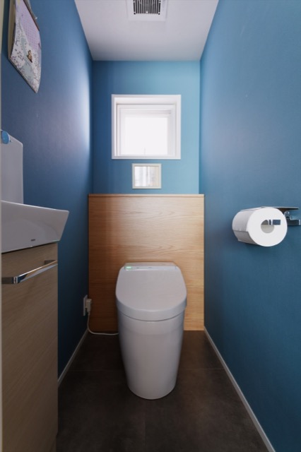 目の覚めるようなブルーを選んだこちらのおうちもその一例。