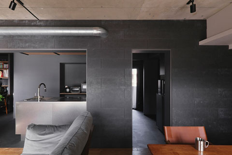 テーブルの脚や照明のブラックに合わせて、カウンター下部にさりげなく黒を入れたのにお気づきでしょうか。