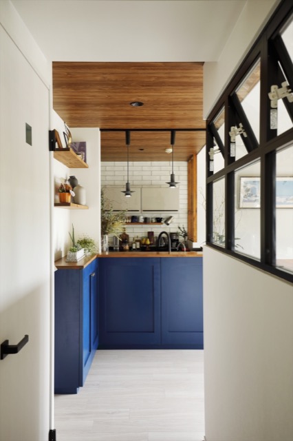 既製品ではなかなか出会えなさそうな鮮やかなブルーも、造作なら思い通りに実現。