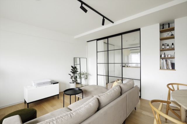 LDKと寝室をガラス建具で仕切ったこちらのおうち。