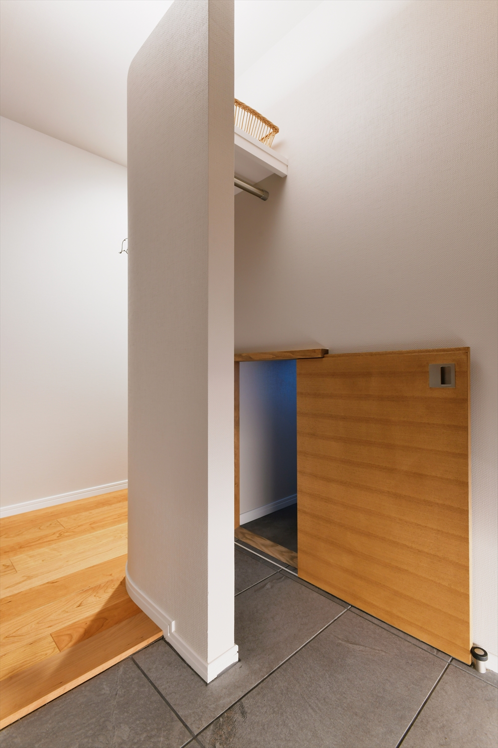 - 小さな荷物用引き戸で、玄関とキッチンをつないで