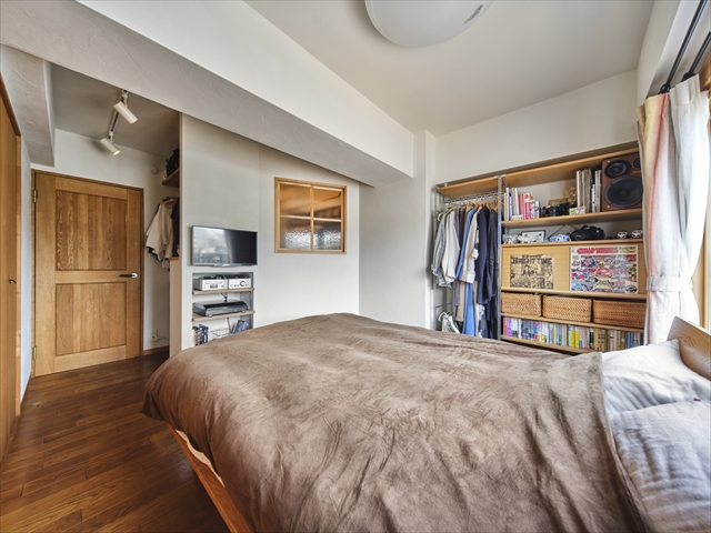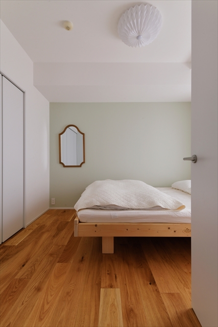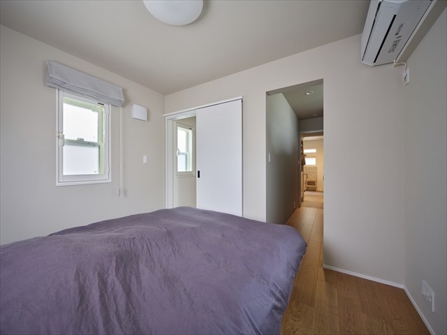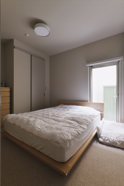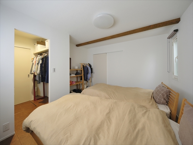 こちらの寝室はLDK側にも出入り口を設けて、お家全体を回遊できる動線をつくりました。