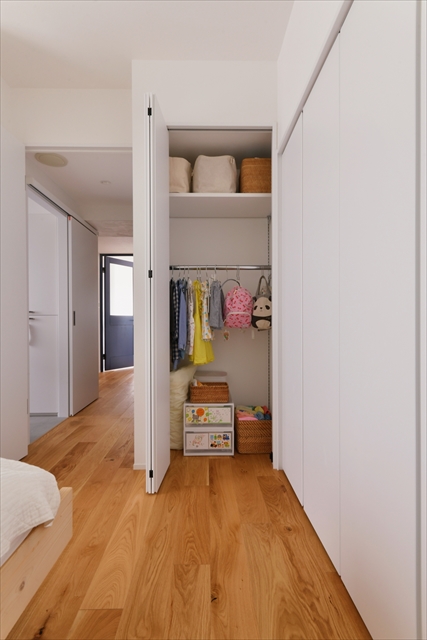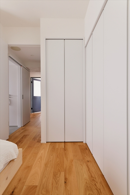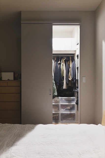 寝室から、収納を通って別の場所へ。廊下の役割ももたせて