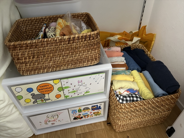 中を拝見すると、小さい収納にはお嬢さんの服とバッグ、大きい収納にはママのワードローブ。