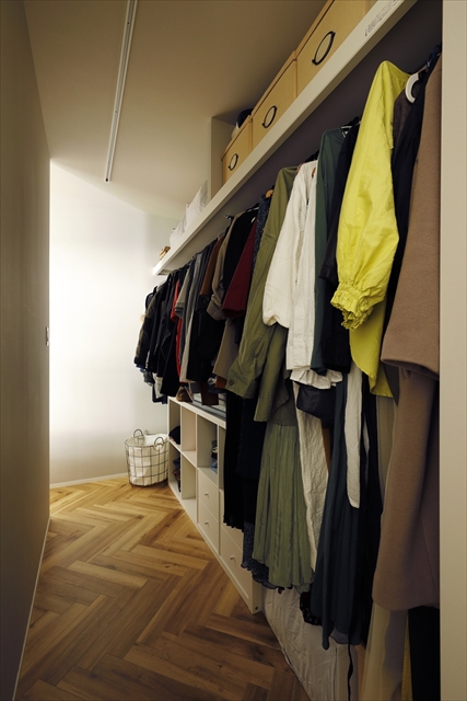 間取りの工夫で奥行きをもたせ、たっぷりしまえるWICに