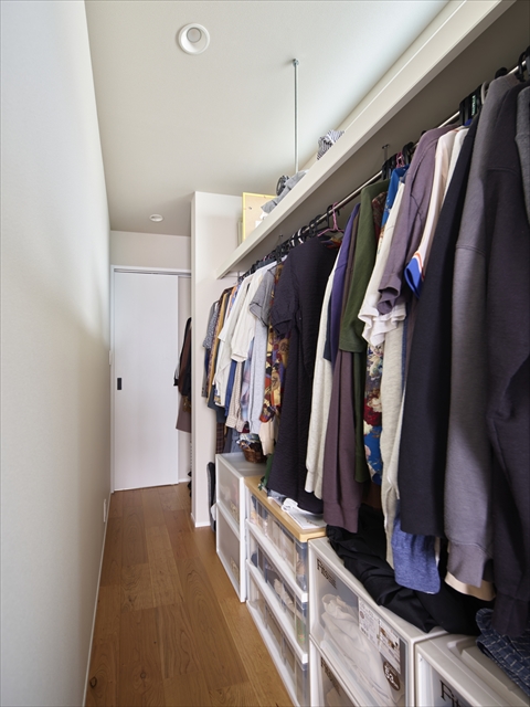 内壁の内部のスペースを、通り抜けできるウォークスルークローゼットにしました。