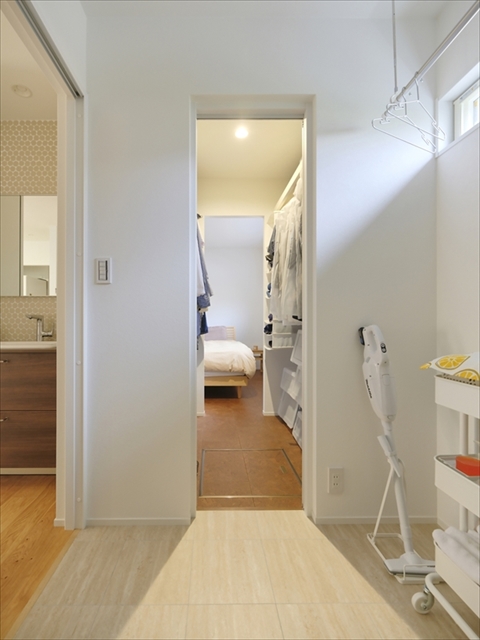 お風呂あがりに寝室に直行できること、洗って干した洗濯物をすぐにしまえるというメリットがあります。