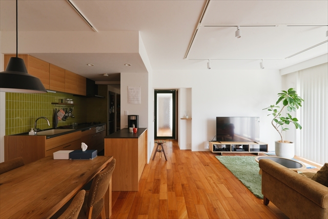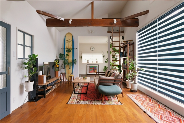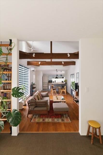 写真の事例詳細はこちら:事例No.995 チークの無垢床とグリーンが調和する、心地よい暮らし