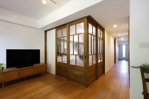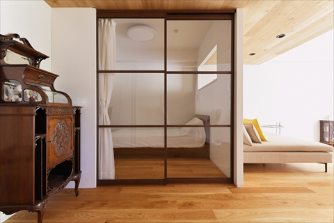 写真の事例詳細はこちら:事例No.937 ガラスの引き戸で軽やかにゾーニング