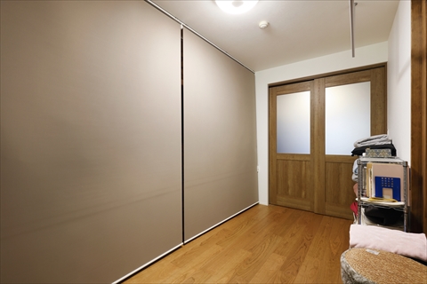 コンパクトにした和室の入り口にはウォークインの収納室を設置。