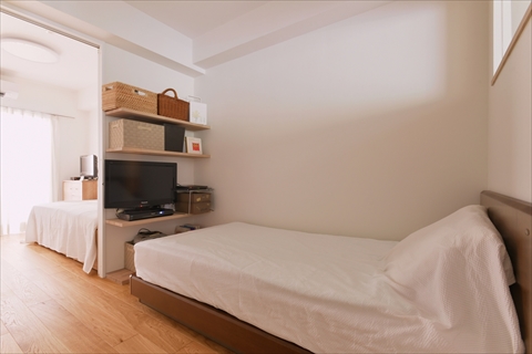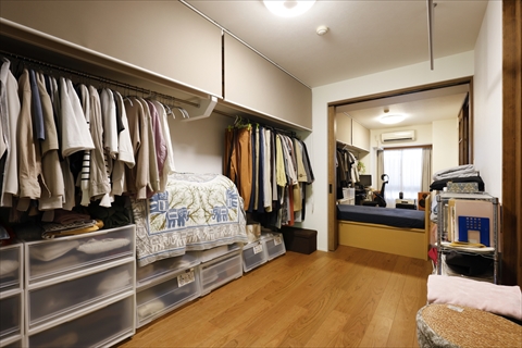 室内窓のあるスペースがもと和室で、リノベ後は妻の寝室として活用。