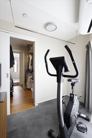 使わなくなった居室のスペースは大容量の収納やトレーニングマシンを置いたワークスペースとしました。