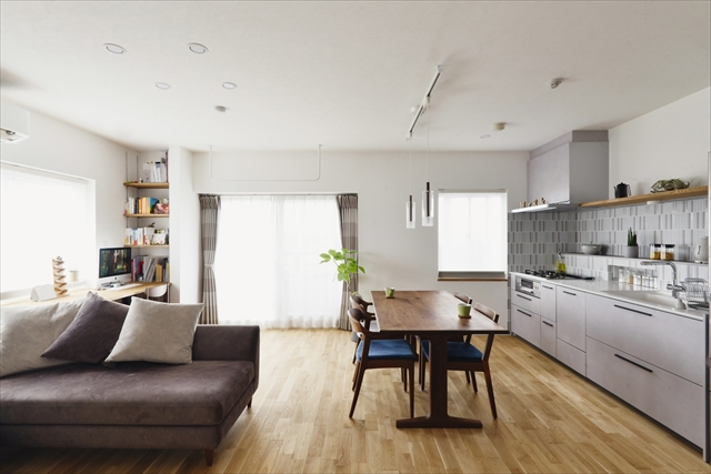 空間がキッチンカウンターで分断されないため、広々とした大空間をつくることができます。