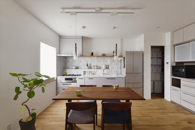 背面収納がないぶん、パントリーを併設することでじゅうぶんな収納量を確保しました。