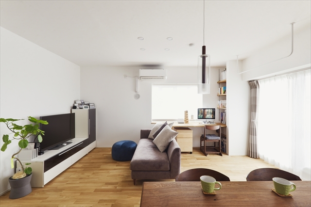 写真の事例詳細はこちら:事例No.997 無垢フローリングが心地よい、家族で過ごすリビング空間