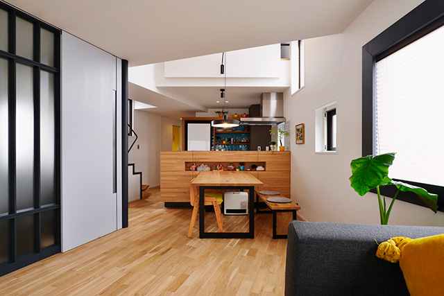 M様ご家族はそれぞれが創作活動をされるなど、クリエイティブな感性をお持ちで、造形や色彩感覚がとても豊か。そこで、内装に関して細部までオーダーメイドで対応しています。プランナーがお客様の「こうしたい!」という気持ちに寄り添い、全体の雰囲気にぴったりのデザインを提案。それを職人たちが共同作業でカタチにしていきました。