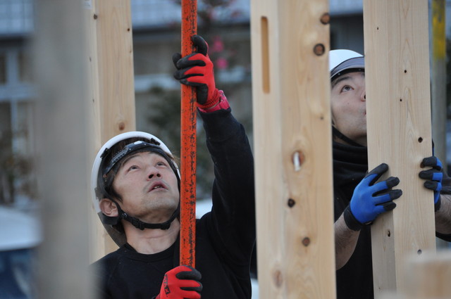 ◆大工仲間とともに 近隣への配慮と安全第一で行った建て方作業