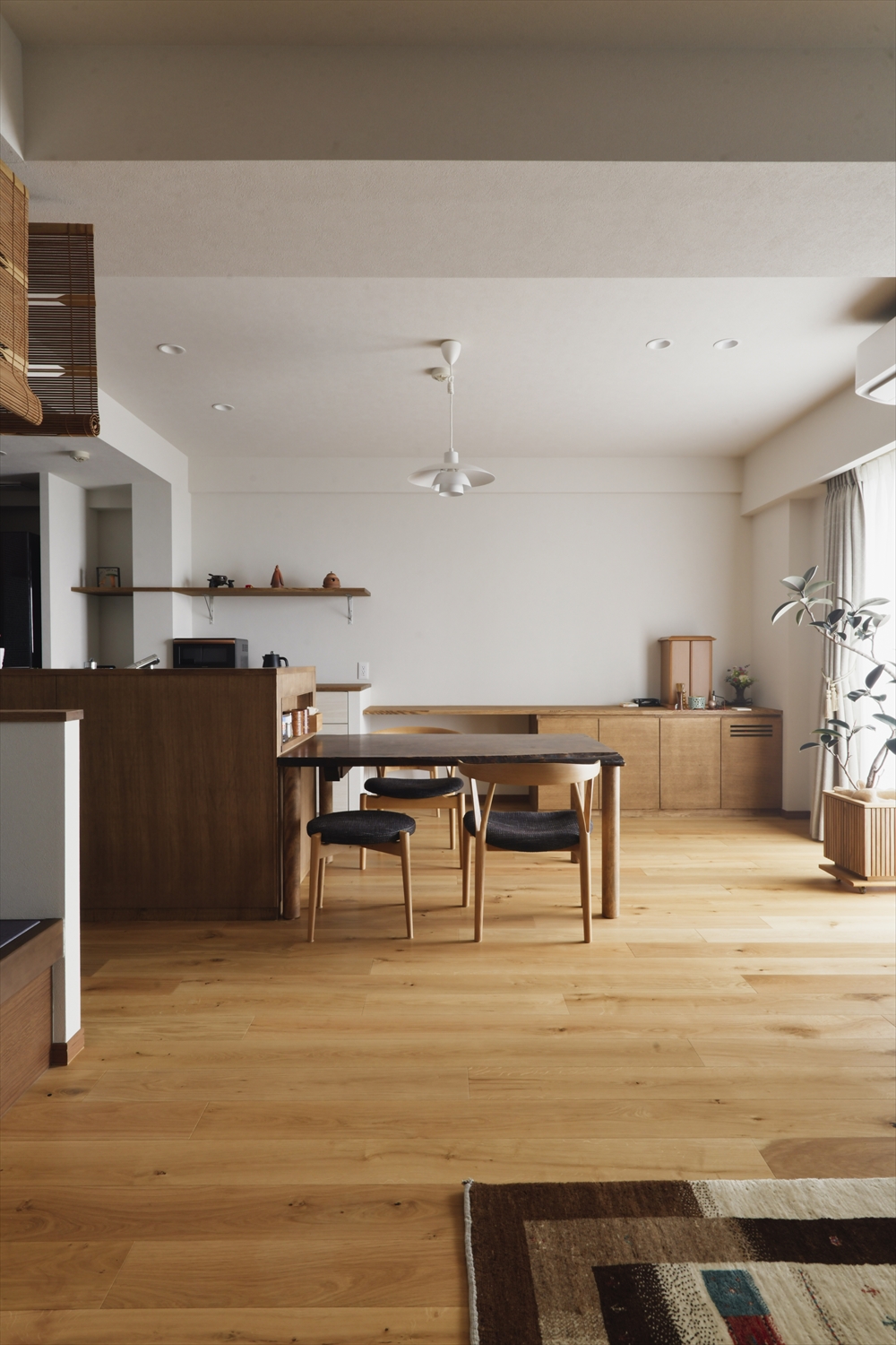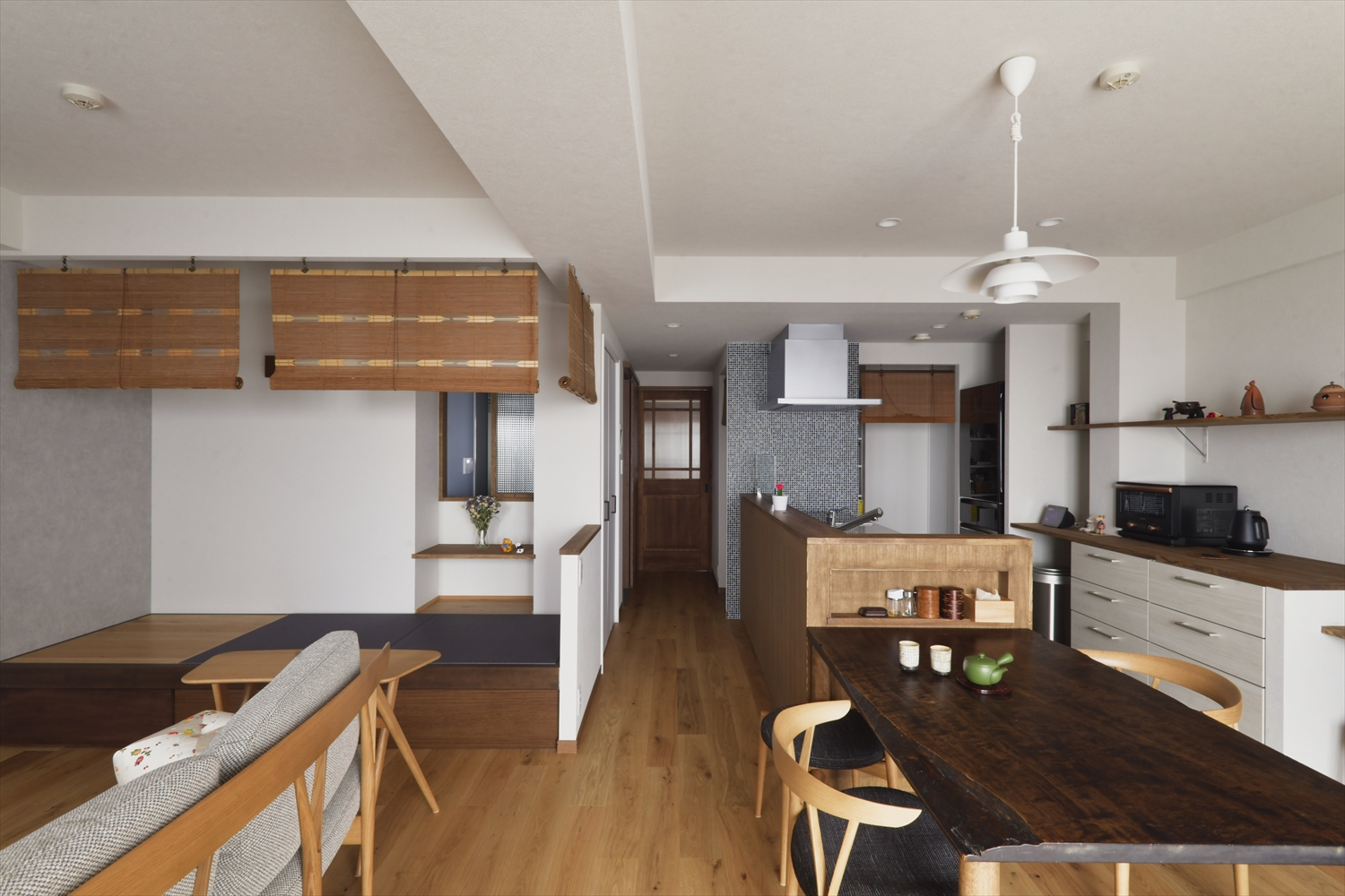 かつてご家族とともに時を重ねてきたご実家のすだれや天板が、丁寧に取り入れられた和モダンのお家です。