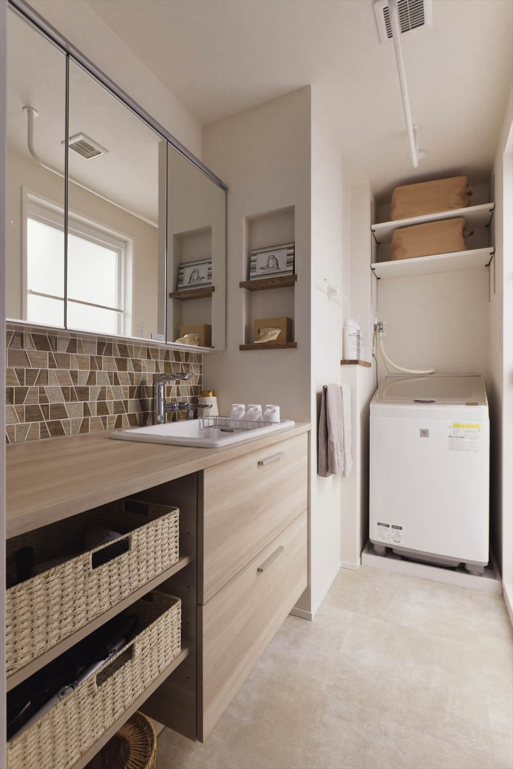 ほのかな光沢のある別のトーンのタイルで上質感がプラス。