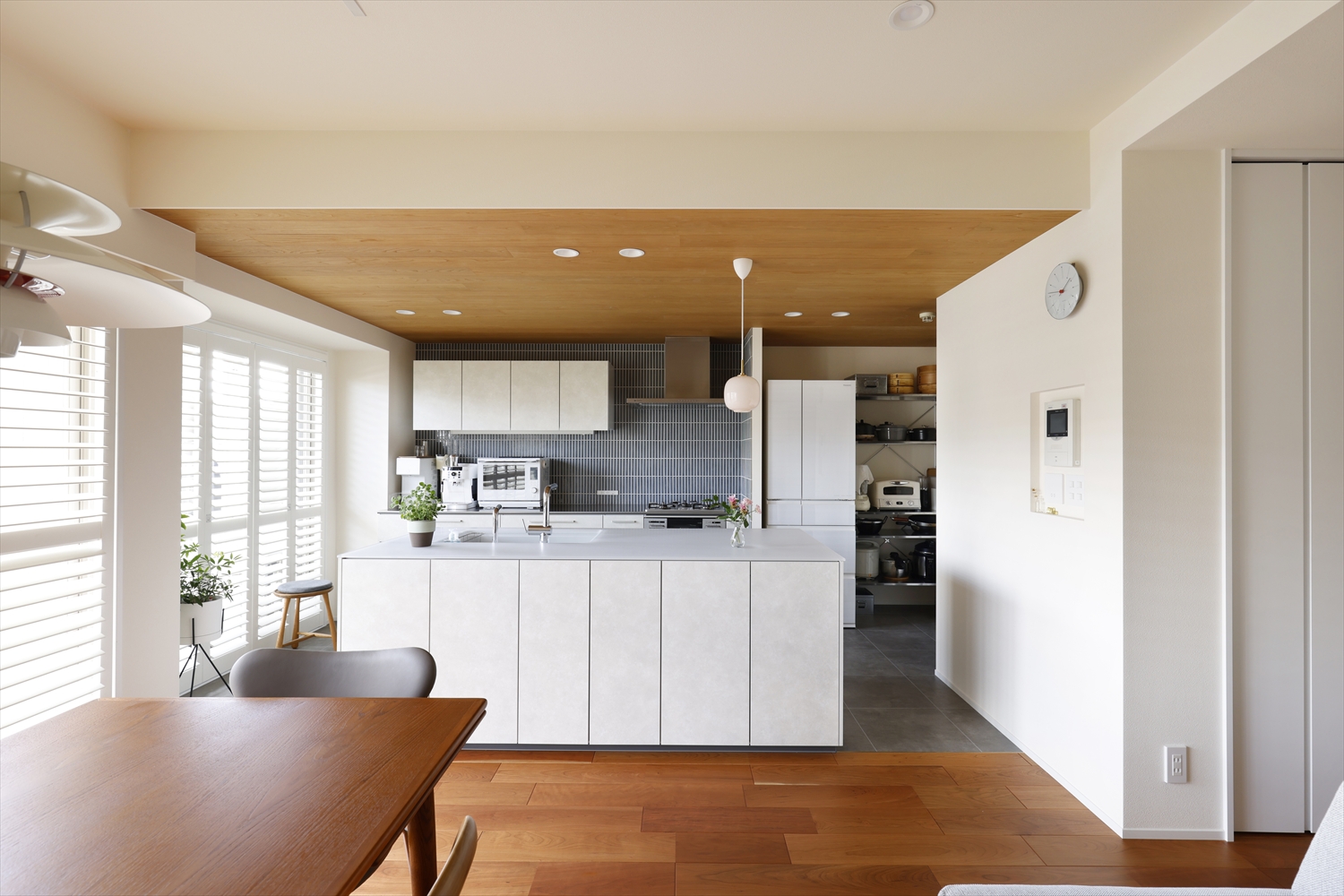 リビング南面のウッドシャッターから差し込む光にうっとり。。。