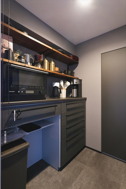 パントリー内は、冷蔵庫や家電などを収納でき、空間全体をすっきりと保てる工夫が施されています。