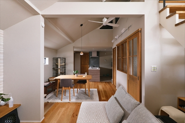 使いにくい位置にあった2階とロフトをつなぐ階段は、リビングに固定式の階段を新設。
