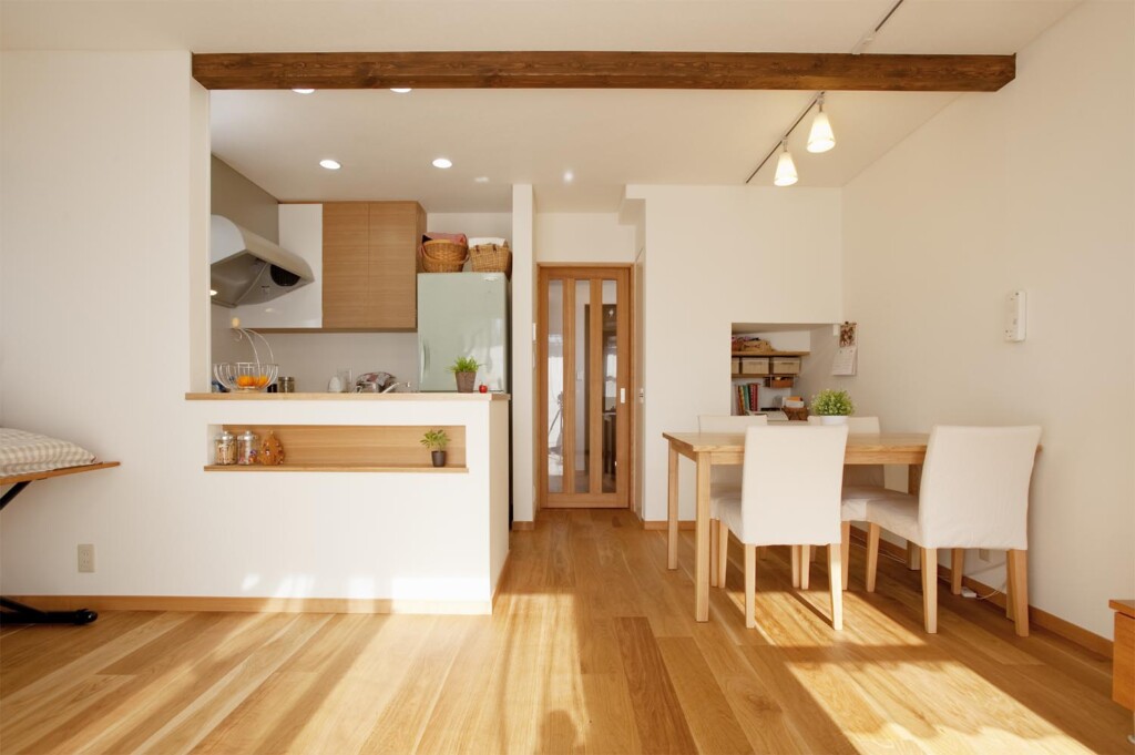 チークの無垢床とグリーンが調和する、心地よい暮らし