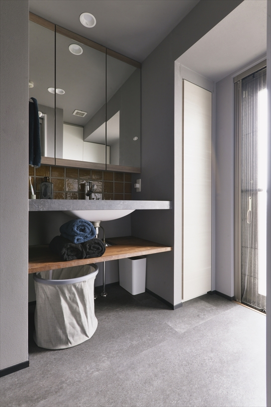 洗面室はグレーでスタイリッシュにまとめ、落ち着いた空間に照明の光がよく映えるトイレは、広くなったことで使い勝手も良くなりました。各所、細部までこだわりをつめ込んでいます。