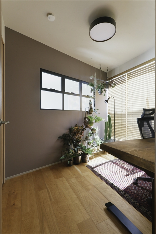 書斎にはそれぞれ違った色のアクセントクロスを採用して、部屋ごとに個性が感じられるようなポイントも。