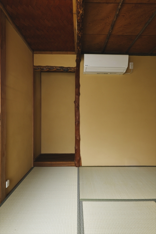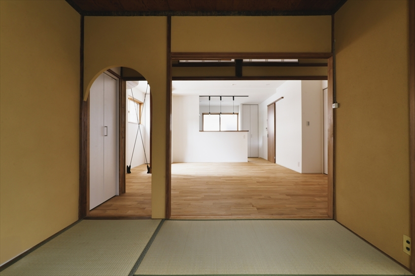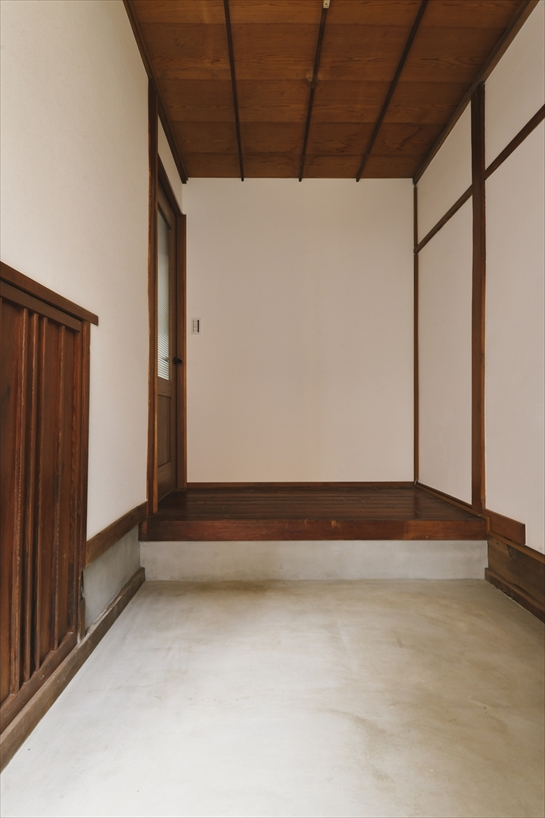 4室あった和室は1室のみ残し、残りの3室はLDKに改修。LDと玄関を分ける扉を設け、空間にメリハリも生まれました。漆喰や聚楽壁も既存のイメージを変えず塗り直しました。