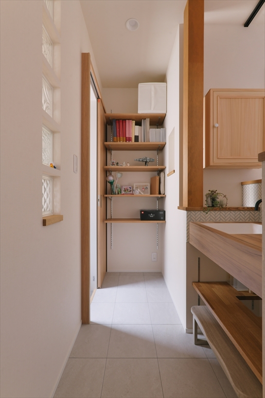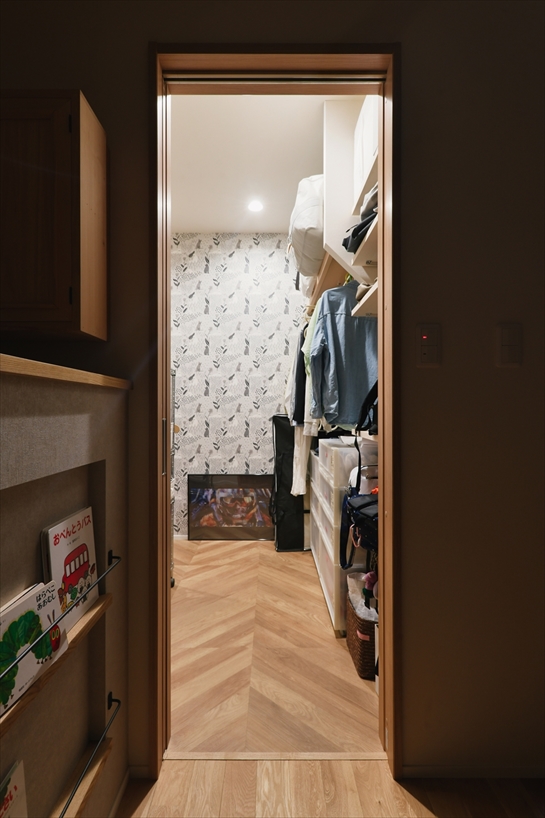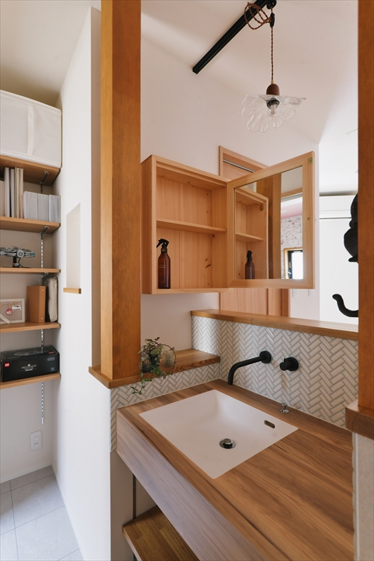 また、「みんなの部屋」の一角に大容量のWICと洗面台を新たに設置。これから益々モノが増えていくであろうことや朝の身支度がスムーズにできるようにといった、将来の暮らしを想定した提案を盛り込みました。