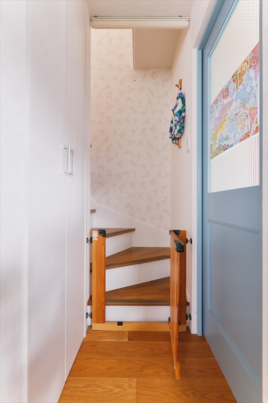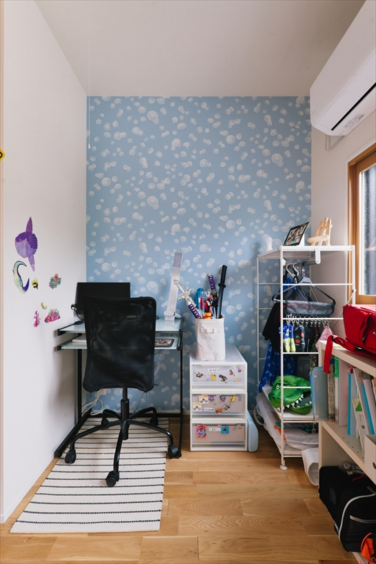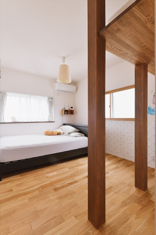 娘さんたちはまだ小さいため、将来、個室にできる広々としたスペースを確保。階段を上がると広がるオープンスペースを「みんなの部屋」とし、残りの2居室を主寝室とご長男の部屋に利用しています。