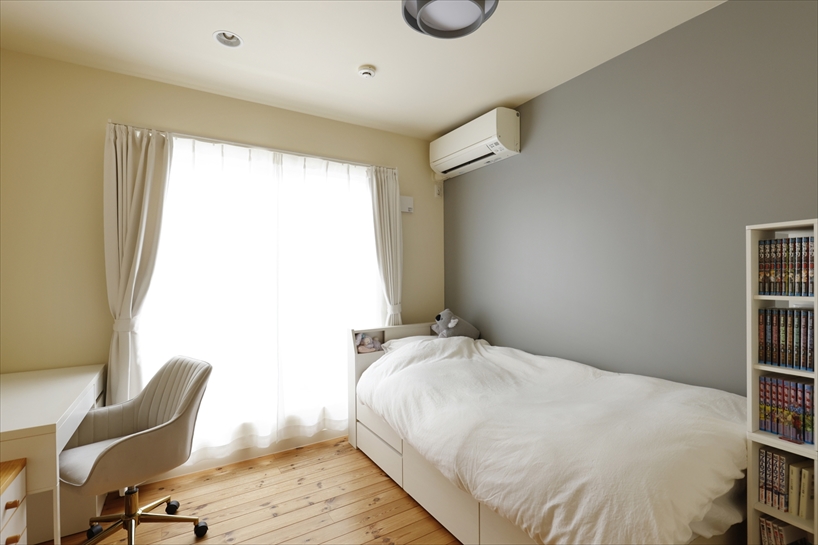 2階では廊下からアクセスできるファミリークローゼットを新設。個室にはお好みのカラーの塗装をアクセントに採り入れ、それぞれの新しい空間を楽しまれています。