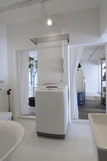 そして一番の特徴は、その水廻りも含めて、ドアが一切ないこと。「トイレも?大丈夫ですか!?」と当社の方は心配でしたが・・・。各室ともワイヤーで白い布をつるした、カーテンが目隠しをしています。