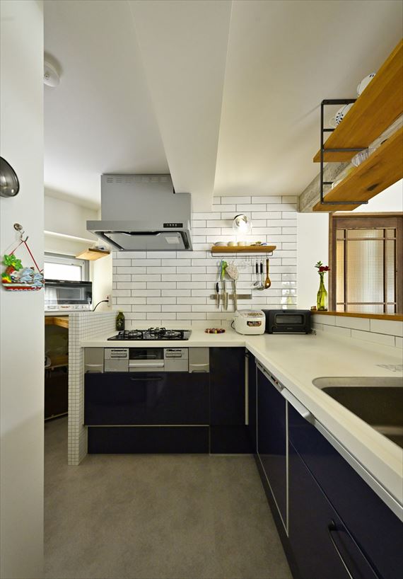 壁付けだったキッチンはリビングと対面になるL字型キッチンに。